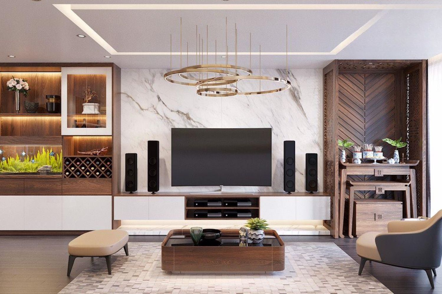 Những vật liệu này không chỉ đảm bảo độ bền mà còn giúp bàn thờ hòa hợp với nội thất hiện đại.