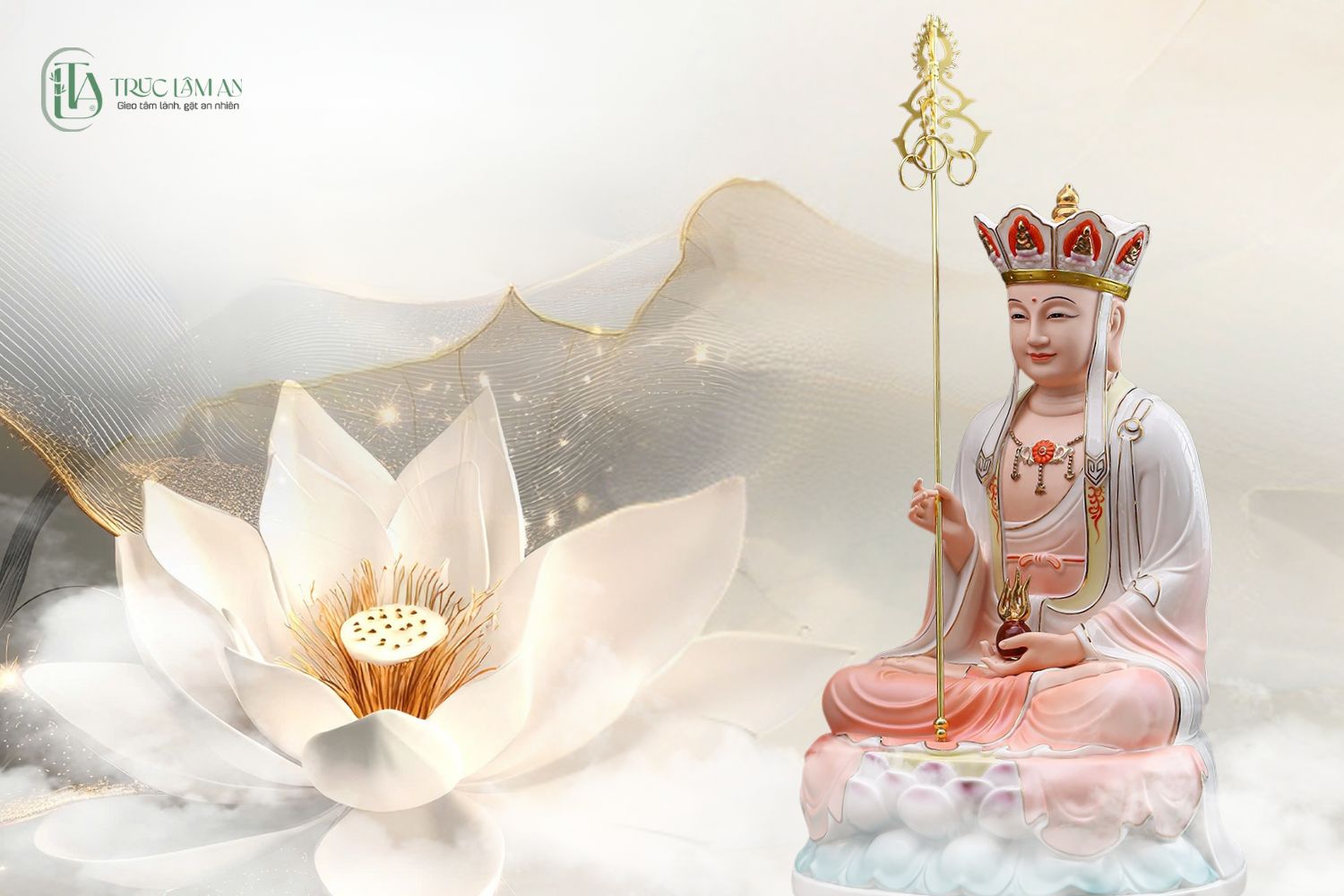 Bồ Tát Địa Tạng, với đại nguyện cứu độ chúng sinh trong cõi địa ngục và cô hồn, là biểu tượng của lòng từ bi vô hạn trong Phật giáo. Trong tháng 7 âm lịch (tháng cô hồn), Ngài được kính lễ đặc biệt để cầu siêu cho các linh hồn. Bài viết này của Trúc Lâm An sẽ làm rõ vai trò của Bồ Tát Địa Tạng, ý nghĩa thờ cúng trong tháng cô hồn, cách lập bàn thờ đúng nghi lễ và những vật phẩm liên quan.