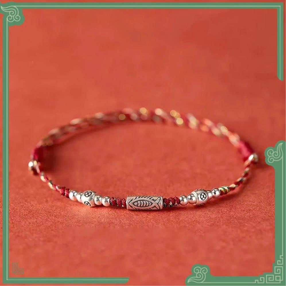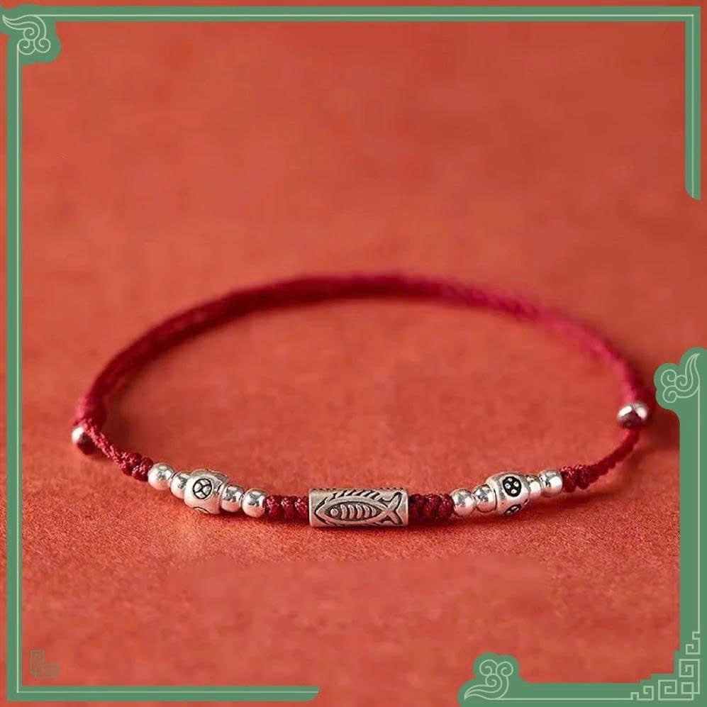 - Thiết kế: Vòng được kết tay thủ công bằng chỉ ngũ sắc, form mềm mại ôm cổ tay. Điểm nhấn là charm cá chép uốn lượn, biểu trưng cho hành trình “vượt vũ môn” không ngừng vươn lên, hóa rồng đắc đạo.