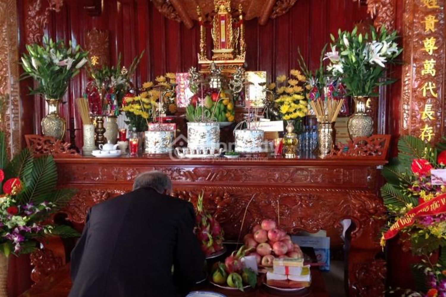 - Không gian thờ cúng: Đặt bát nhang trên bàn thờ sạch sẽ, thông thoáng, có điểm tựa vững chắc (tựa vào tường). Tránh đặt bàn thờ gần nhà vệ sinh, bếp hoặc nơi lộn xộn.