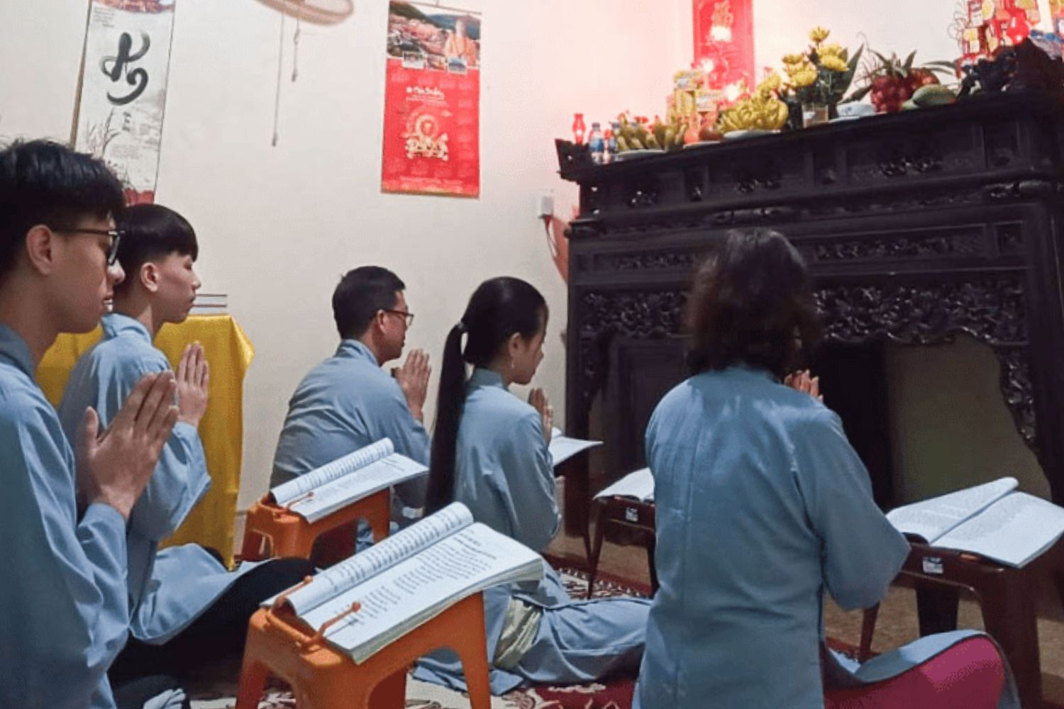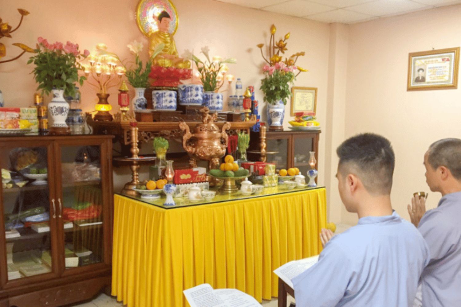 Không gian tụng kinh cần sạch sẽ, thanh tịnh, có thể đặt bàn thờ Phật hoặc đơn giản là một nơi yên tĩnh. Hãy tắt điện thoại, giảm âm thanh xung quanh để dễ nhiếp tâm.