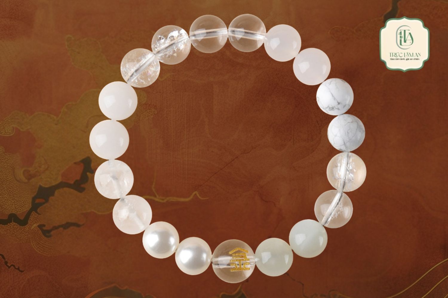 Vòng đá phong thủy mệnh Kim cho nữ từ thạch anh trắng tượng trưng cho sự tinh khiết và minh mẫn. Loại đá này giúp mệnh Kim tăng cường sự tự tin, cải thiện khả năng giao tiếp và thu hút những cơ hội tốt trong cuộc sống.