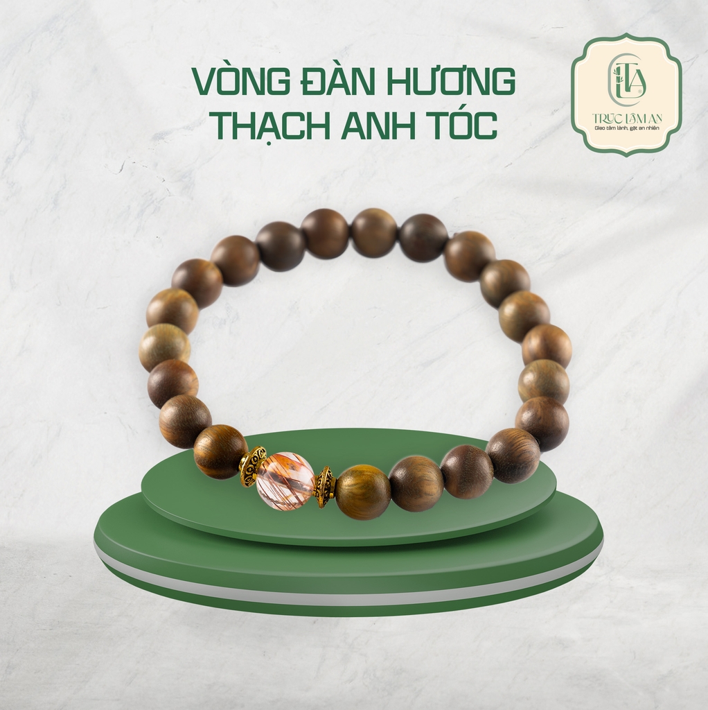 - Tránh tà, đem lại may mắn, an lành: Theo quan niệm phong thủy, gỗ Đàn hương là loại gỗ quý được sử dụng nhiều trong thờ cúng, tôn tượng và hộ thân, kết hợp cùng đá Thạch anh tóc theo bản mệnh ngũ hành giúp xua đuổi tà khí, thị phi, đem lại bình an, may mắn cho người đeo.