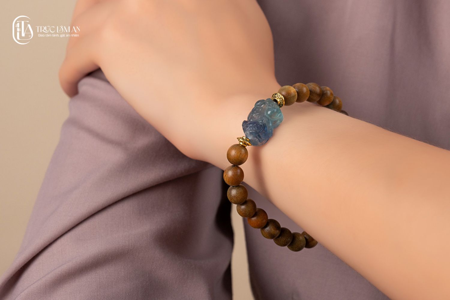Tỳ Hưu là linh vật chiêu tài nổi tiếng, chỉ ăn vàng bạc và không nhả ra, tượng trưng cho việc giữ vững của cải. Khi kết hợp với gỗ đàn hương, vòng trở thành món trang sức phong thủy giúp hút tài lộc và bảo vệ khỏi năng lượng xấu.